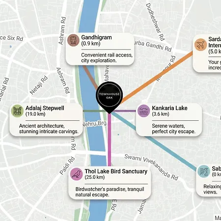 The 4-star Townhouse Oak Ahmedabad Junction Hotel has 30 rooms and is located approximately a 20-minute walk from the Rani no Hajiro.